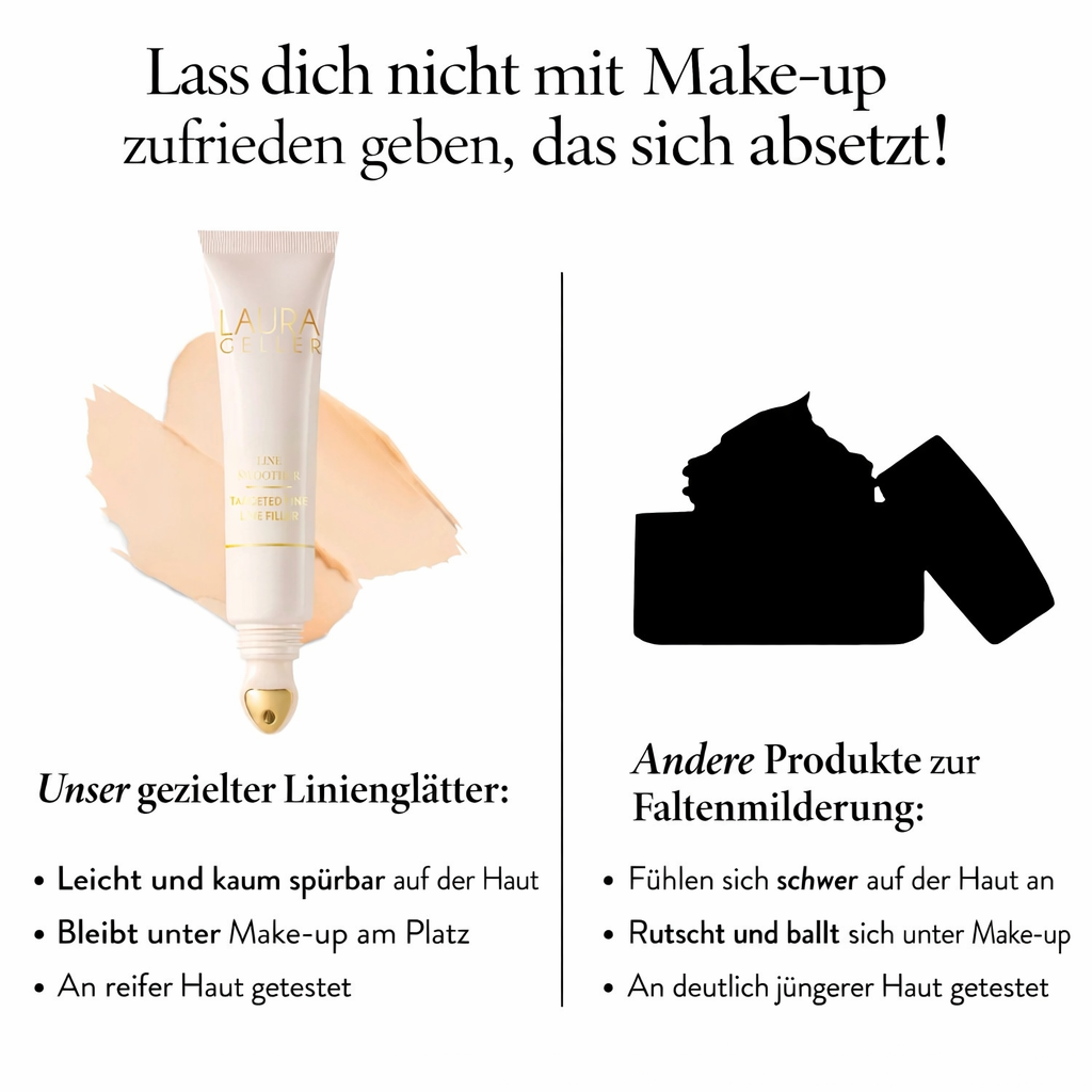 Nicht alle Falten-Filler sind gleich. Während andere Produkte schwere Silikone verwenden, die deine Poren verstopfen, oder zu dick auftragen und dadurch künstlich wirken, setzt unsere Formel auf intelligente Präzision. Die leichte, atmungsaktive Textur verschmilzt nahtlos mit deiner Haut und bietet dir echte Pflege statt nur Kaschierung.